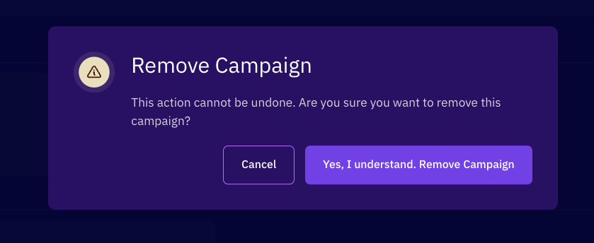 Because this will delete any data, we do ask you to confirm twice that you intended to delete this campaign to prevent any accidental mistakes.