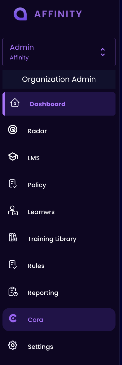 * Enable Cora in the Affinity app: This will allow learners to ask Cora questions from their Learner dashboard in the Affinity app.